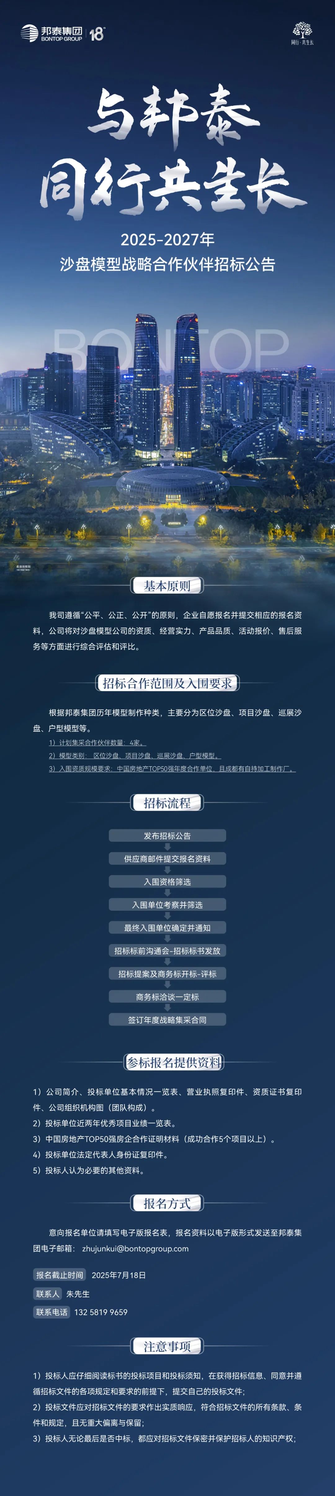 与邦泰同行共生长 沙盘制作公开招标 2025-2027战略伙伴招募中!